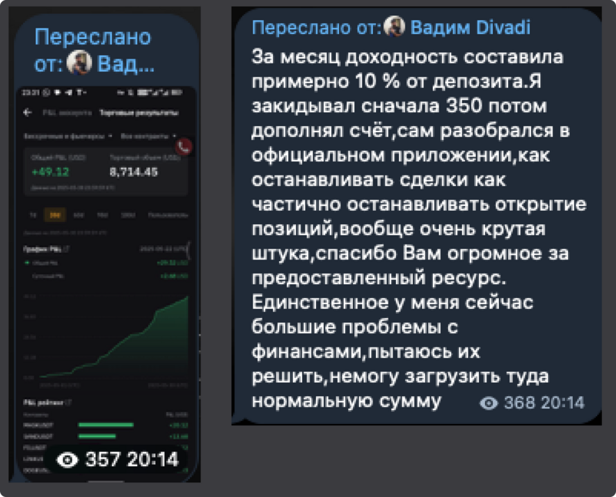 Торговые сигналы или любая другая информация, которая была или будет опубликована на этом сайте не являются индивидуальной инвестиционной рекомендацией (ИИР). Открывая сделки на своем аккаунте, вам необходимо самостоятельно определять свои цели инвестирования, допустимый риск и (или) ожидаемую доходность.